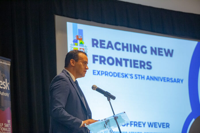 Minister Geoffrey Wever tabata presente pa inicio di e evento celebratorio di Exprodesk su di 5 aniversario: Reaching New Frontiers.