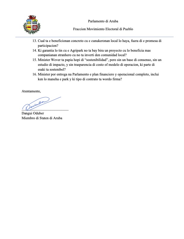 Por lesa e preguntanan cu a ser manda pa minister Wever aki.