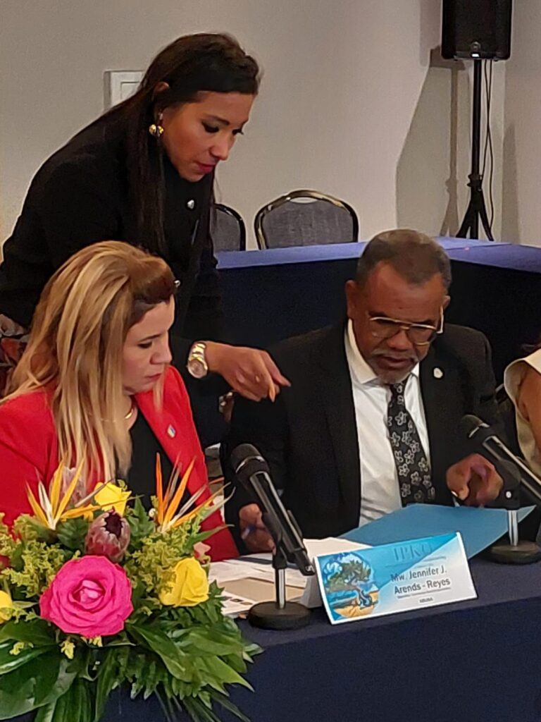 Parlamentario Jennifer Arends-Reyes, lider di fraccion di AVP y presidente di e Comision pa Asuntonan di Reino y Relacionan Exterior di Parlamento di Aruba, a hunga un papel prominente durante e reunionnan. Den su discurso di apertura, el a enfatisa cu confianza y respet mutuo ta e base pa cooperacion efectivo entre e paisnan den Reino, particular den un contexto global di incertidumbre y presion socio-economico.