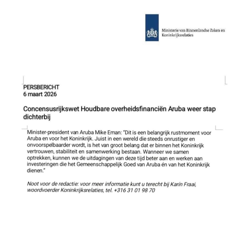 Ademas, Maduro ta recorda cu Aruba ya caba tin un marco legal pa supervision financiero, introduci na 2015 cu ta e Landsverordening Aruba Tijdelijk Financieel Toezicht, cu a establece control riba finansas publico di Aruba.
