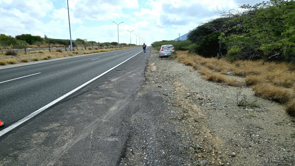 Eynan segun informacion auto a alcansa un peaton, mirando cu ta un highway a pone nan yega cu urgencia.