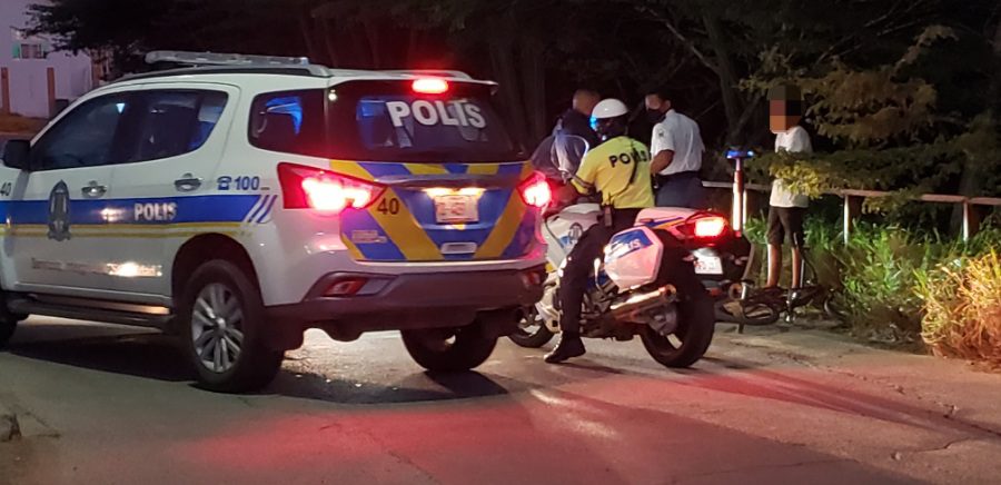 Parti panort polis a haya y para un pareha hoben, nan tawata cu un bicicleta. A wanta nan eynan te ora e guardia e yega pa reconoce nan y no tawata esnan cu a haci e problema, nan por a sigui nan caminda.