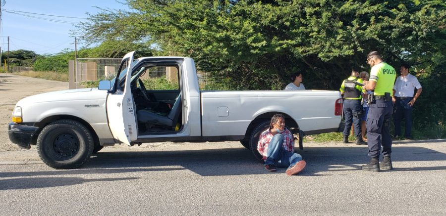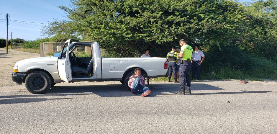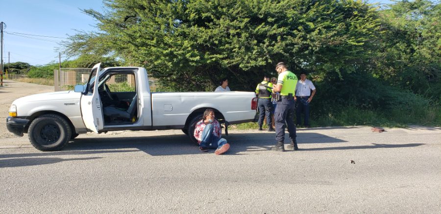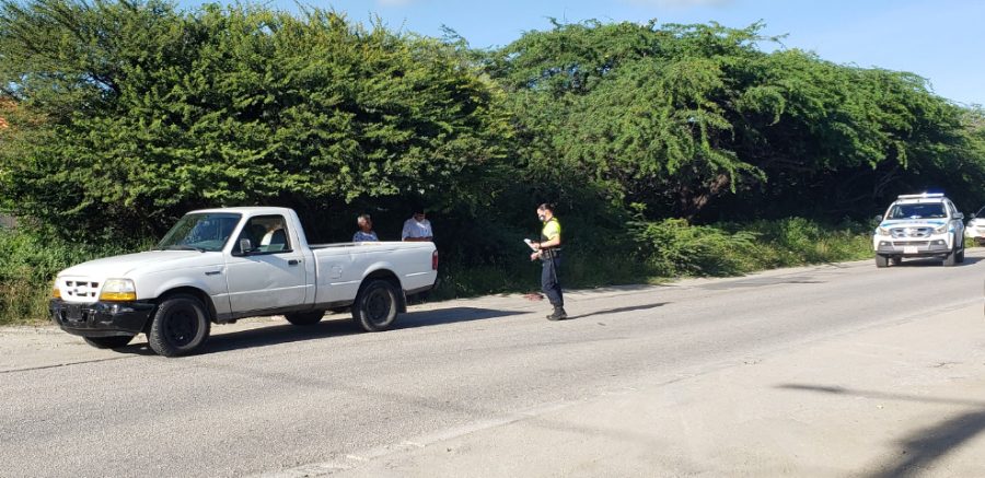 Na banda di caminda tawata tin un pick up para. Algun persona cu a bira e testigonan clave tawata den man auto, y birando e bocht a tuma nota di un maltrato pisa memey di caminda.