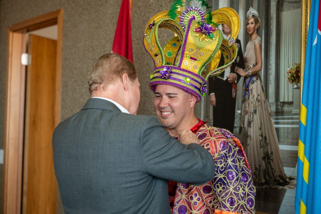 E traspaso di mando ta un tradicion cultural, caminda Gobierno di Aruba simbolicamente ta confia e liderazgo di Carnaval na mannan di e monarcanan, reconociendo nan rol como embahadornan di alegria, identidad y union den comunidad.
