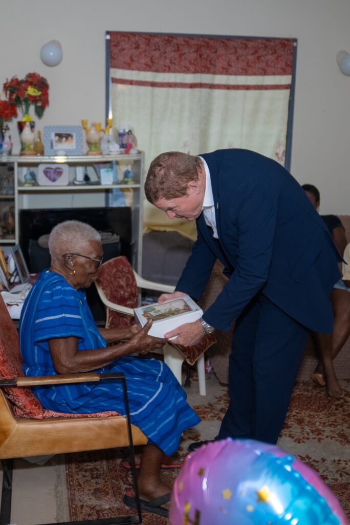 Cu sonrisa y gratitud, señora Berenice Julian a comparti e momento special cu famia y cu Prome Minister, marcando e dia como uno memorable den su celebracion di cien aña di bida.