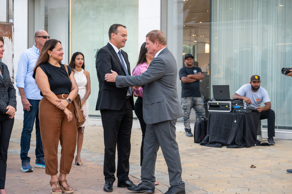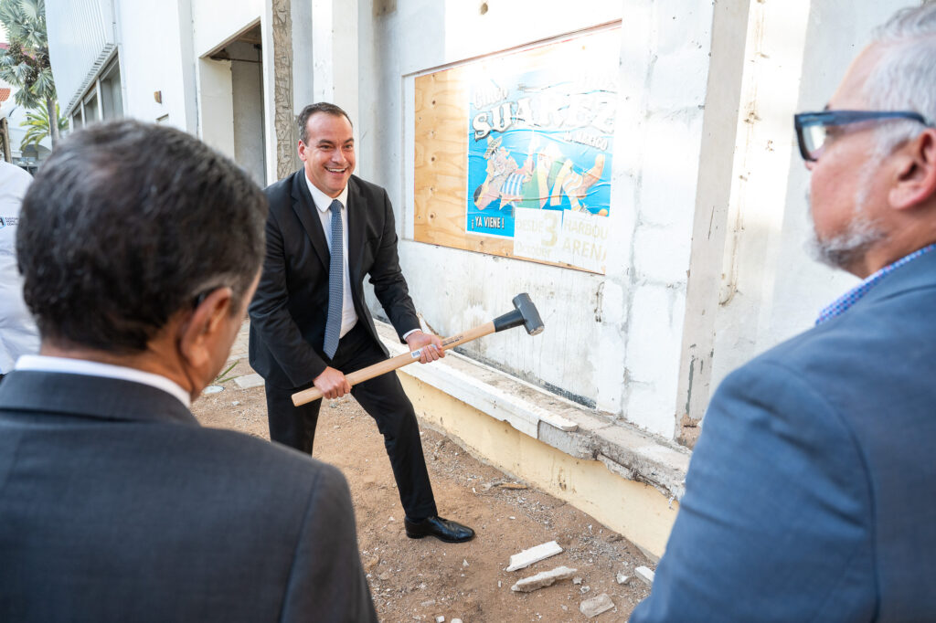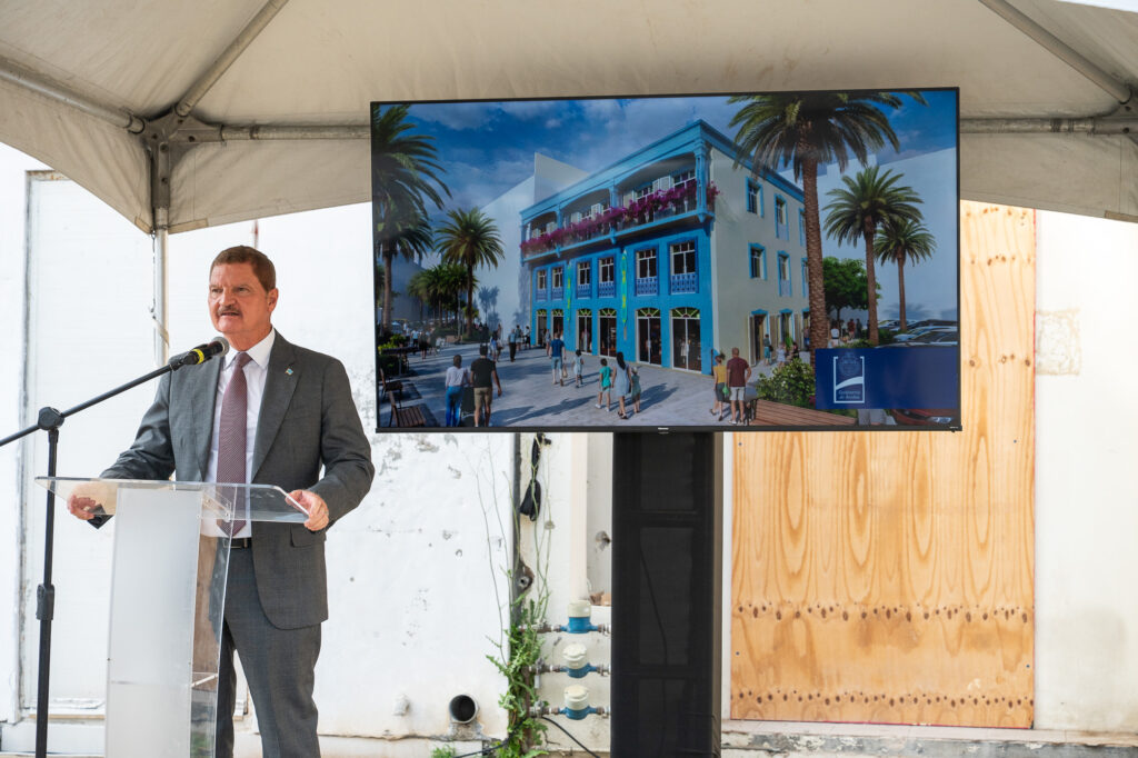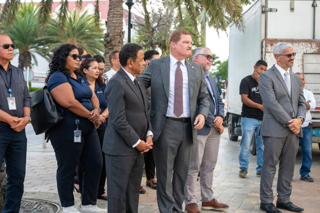 Durante e ceremonia tabata presente tambe Minister drs. Rene Herdé, cu a destaca cu e groundbreaking ta marca e inicio di un transformacion importante pa Oranjestad, y Ministro Gerlien Croes, cu a subraya cu e proyecto ta alinea cu e vision di Gobierno pa un centro di ciudad bibo, funcional y sostenibel.