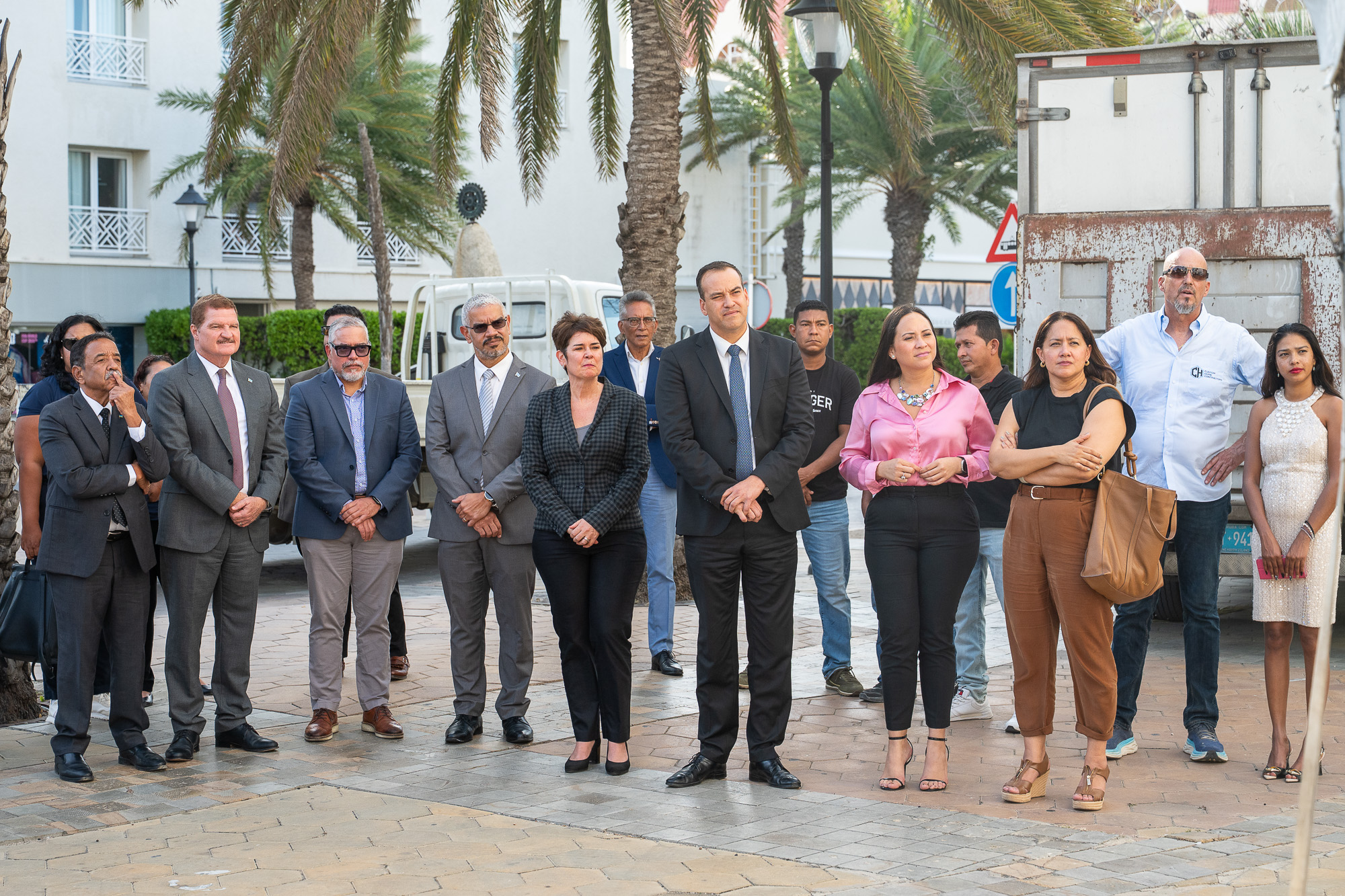 Durante e ceremonia tabata presente tambe Minister drs. Rene Herdé, cu a destaca cu e groundbreaking ta marca e inicio di un transformacion importante pa Oranjestad, y Ministro Gerlien Croes, cu a subraya cu e proyecto ta alinea cu e vision di Gobierno pa un centro di ciudad bibo, funcional y sostenibel.