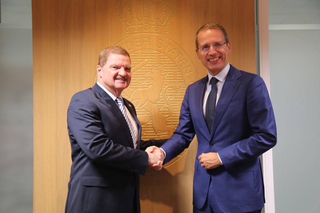 Prome Minister mr. Mike Eman, a haci un bishita oficial na Parlamento di Hulanda, caminda Eman ser ricibi pa e Presidente di e Vaste Kamercommissie voor Koninkrijksrelaties, Sr. Olger van Dijk.