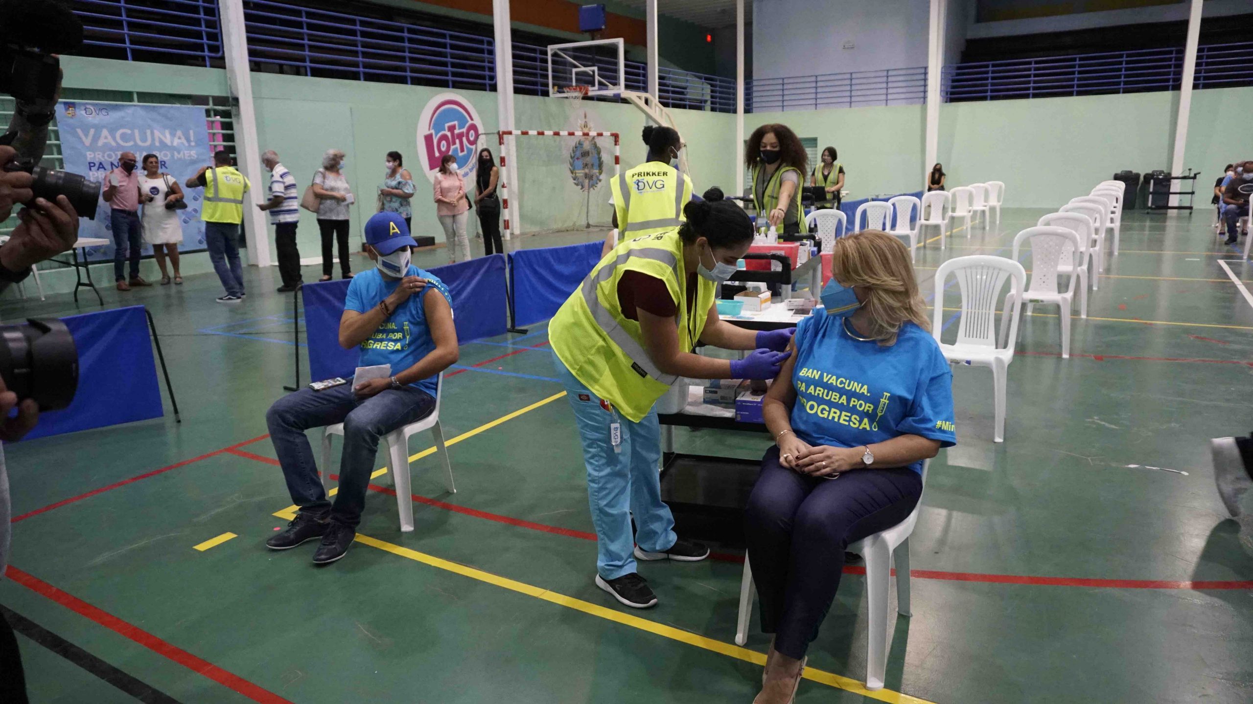 Gobierno di Aruba a percura pa un plan pa registra y brinda e vacuna na un manera profesional, eficiente y lihe. E proceso ta bay full digitalisa for di registracion caba. Y e servicio di DVG y tur cu ta trahando na e diferente localidadnan di vacuna, incluyendo studiantenan di Colegio EPI su unit Salubridad y Servicio, ta profesional y optimal. Tambe tin e ‘Mobiele team’ di DVG cu ta bay casnan di cuido pa duna e grandinan vacuna.
