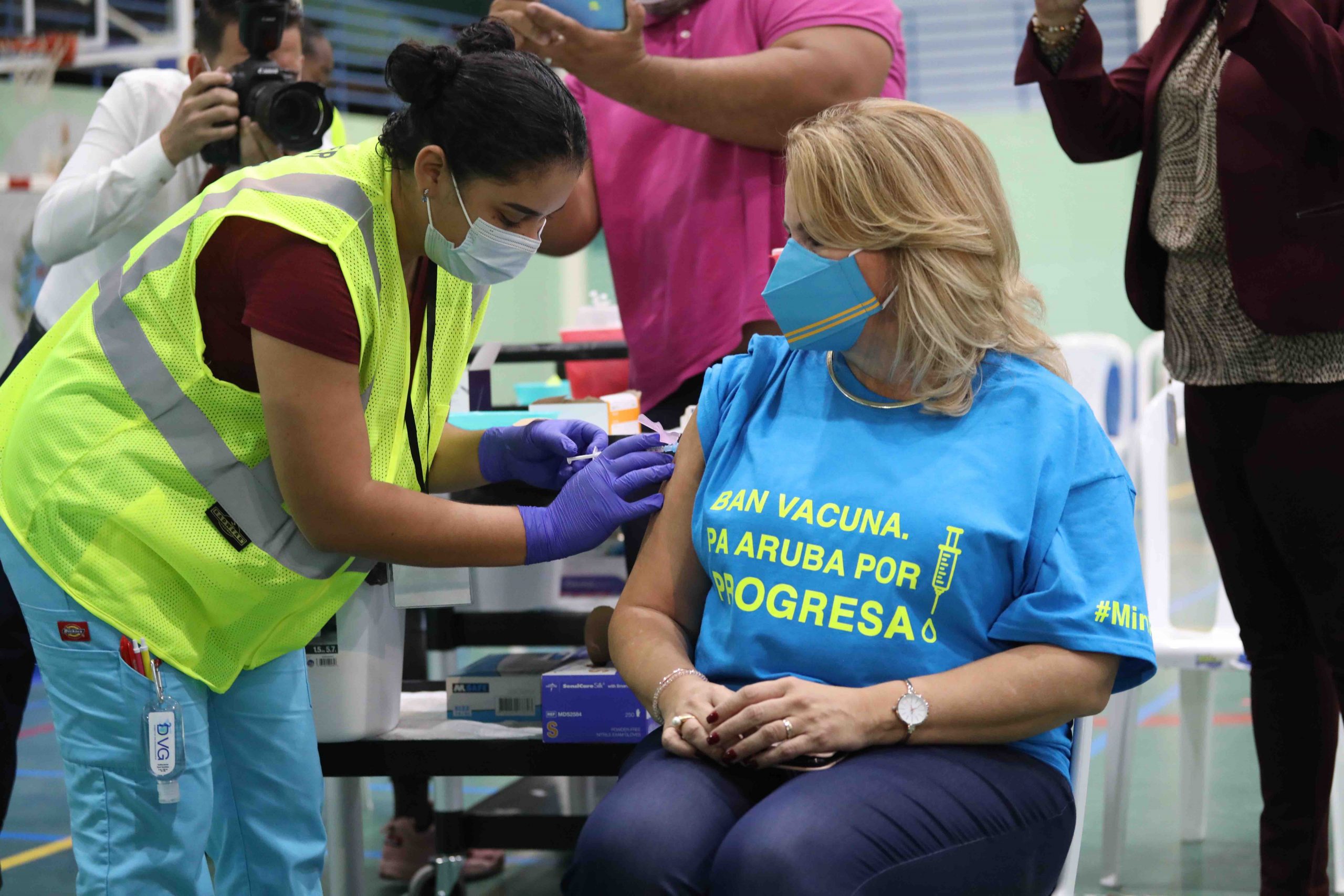 Prome Minister: “Danki na e personal dedica cu ta atendiendo tur e proceso di vacunacion. E servicio ta profesional y hopi amabel. Esey ta laga tur hende sinti mas trankil. Tin hopi elogio tambe di esnan cu a ricibi e vacuna pa e servicio bon y eficiente cu nan a ricibi”.