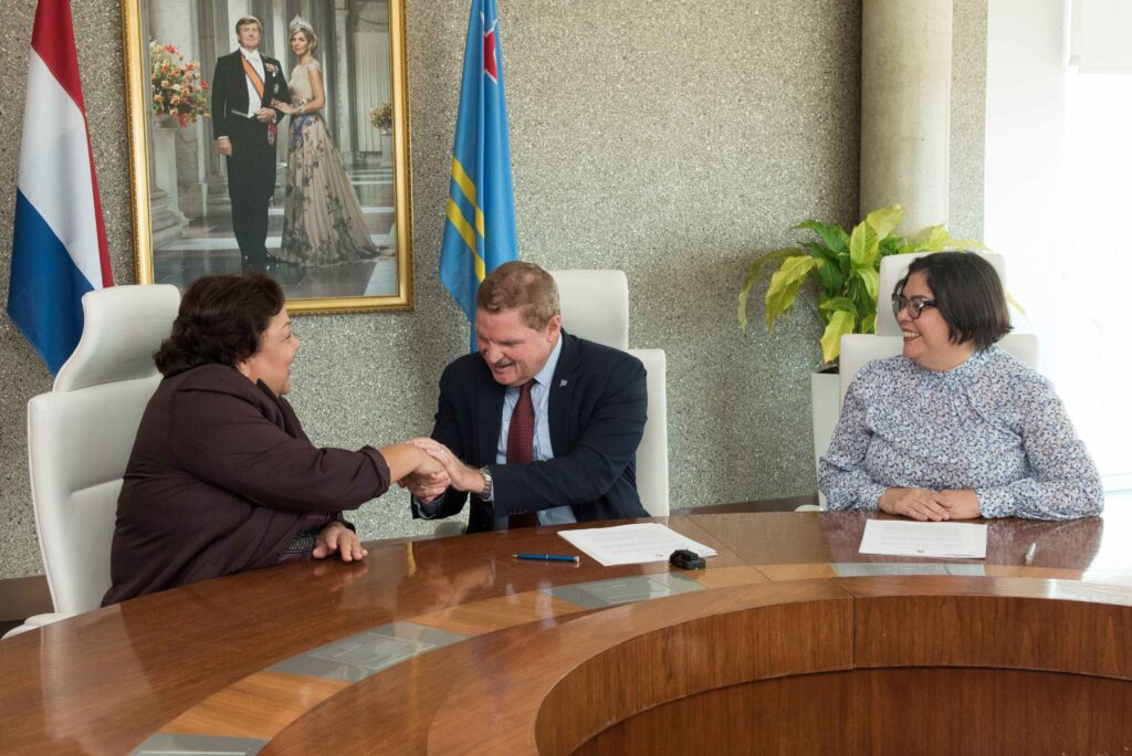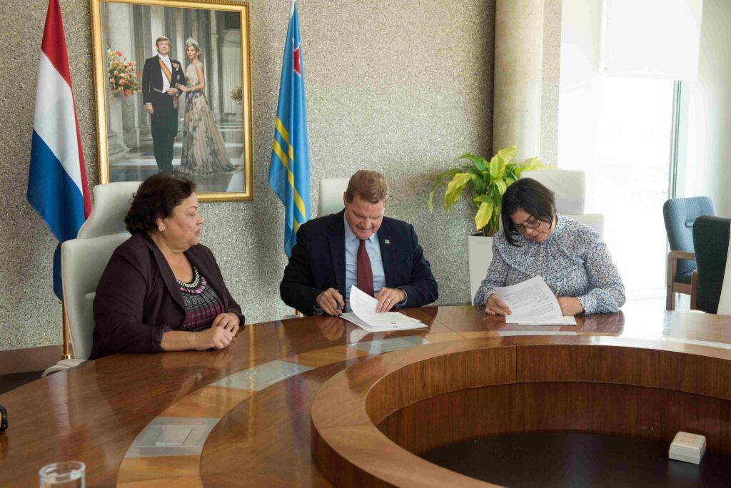 Prome Minister mr. Mike Eman hunto cu representantenan di Stichting Trampolin pa Trabou, Caroll Kock y Marlyne Maduro a firma e acuerdo cu ta pone inclusion como e meta principal. Nos hobennan cu limitacion lo haya e oportunidad pa briya y bira e piesa principal den e proyecto aki.