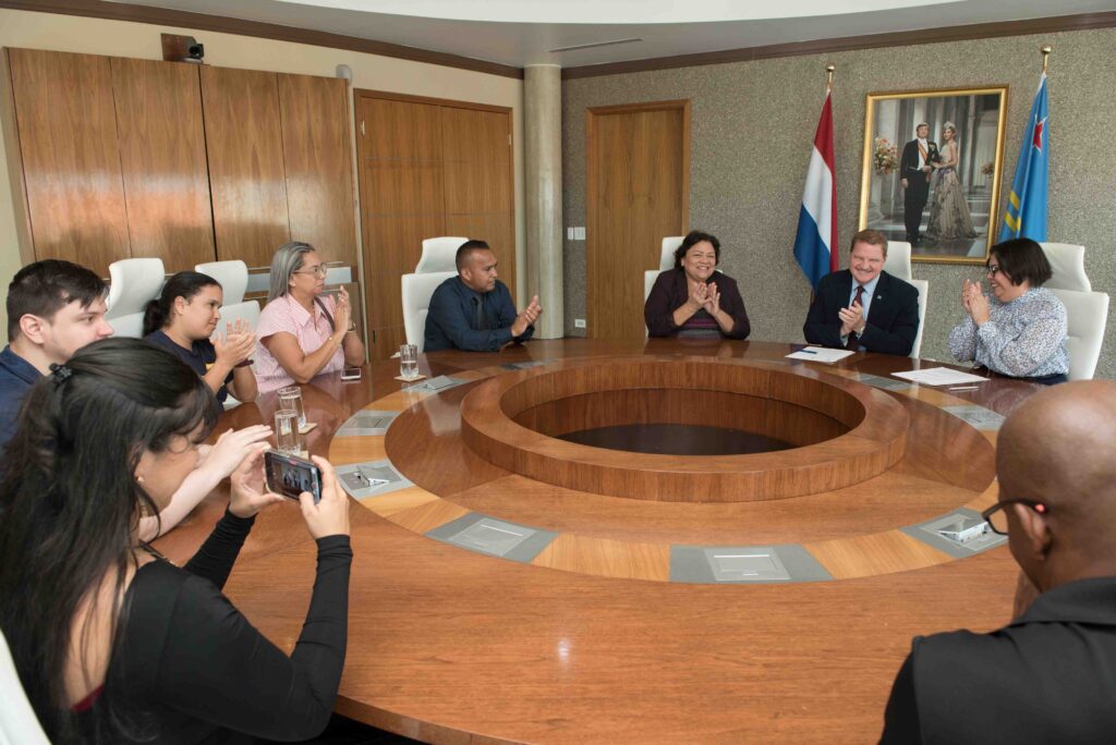 Fusiedirectuer/Merger Director na Sonrisa, Fundacion Trampolin pa Trabou, Stichting Ambiente Nobo Caroll Kock cu indica e fecha caminda cu ta marca historia, caminda a yega na un acuerdo cu Gobierno, caminda lo habri e One of a Kind Café den MFA Paradera.