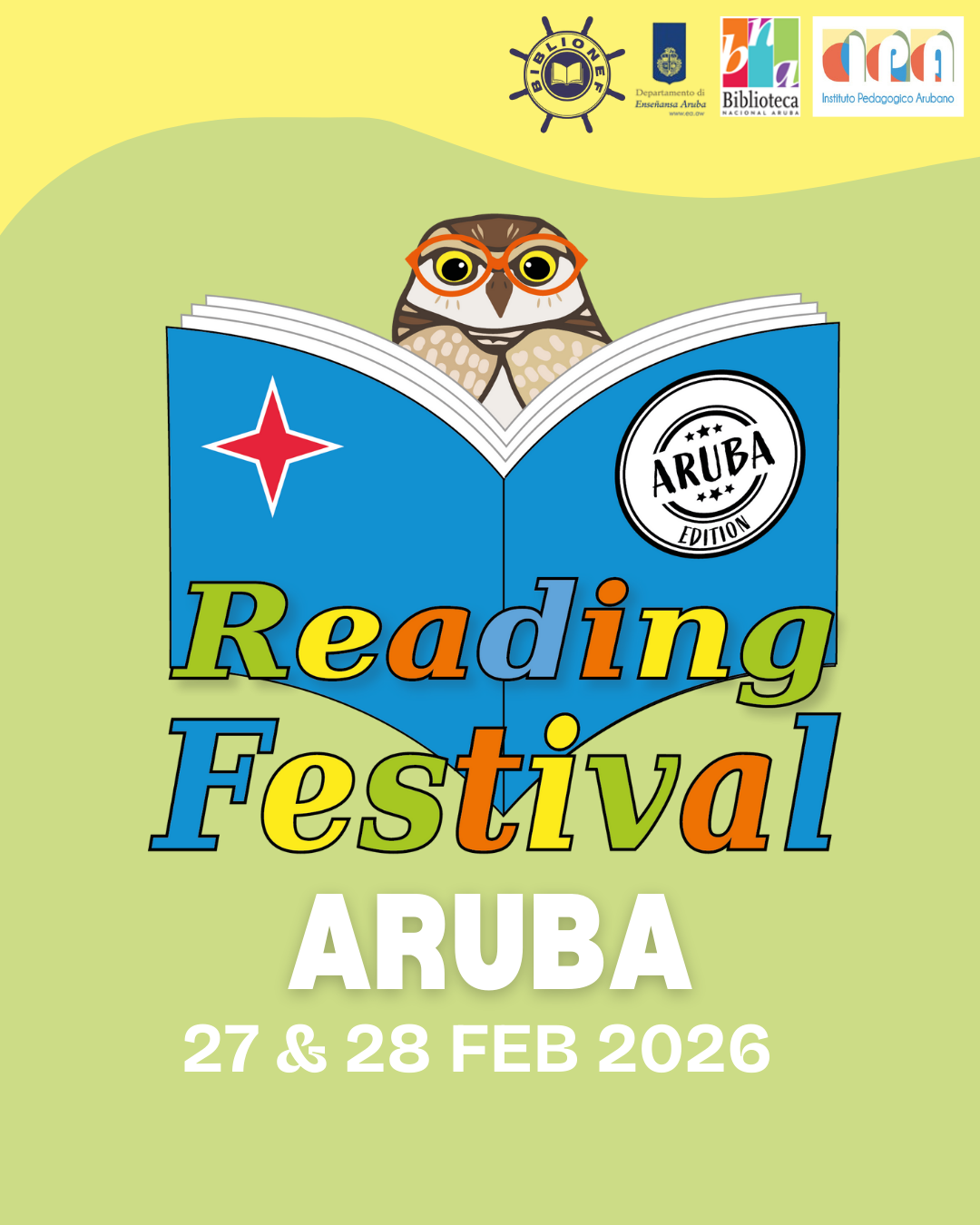 Stichting Biblionef Nederland conhuntamente cu Biblionef Aruba, Biblioteca Nacional Aruba, Instituto Pedagogico Arubano y Departamento di Enseñansa Aruba, ta organisa pa prome biaha e asina yama Reading Festival Aruba. E festival aki ta tuma luga dia 27 y 28 di februari 2026 y tin como meta pa stimula placer di lesamento na miles di mucha na Aruba.