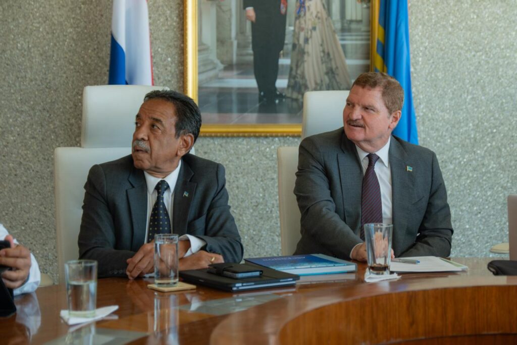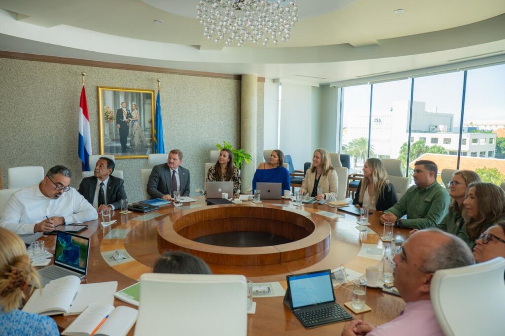 Durante e reunion, Prome Minister di Aruba mr. Mike Eman, como tambe Minister di Infrastructura Rene Herdé, a intercambia idea riba progreso, siguiente pasonan y oportunidadnan pa sigui fortalece e proteccion y maneho responsable di nos medio ambiente marino.