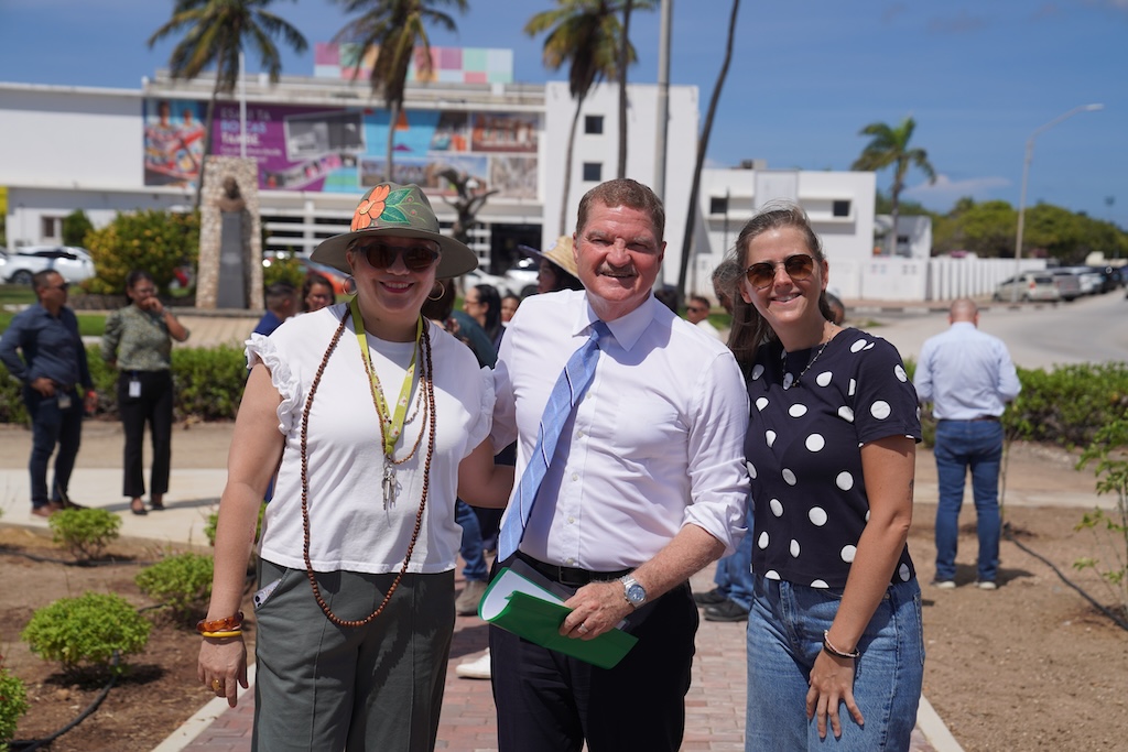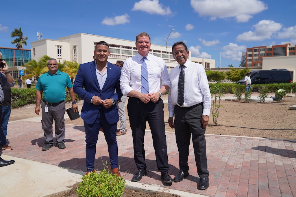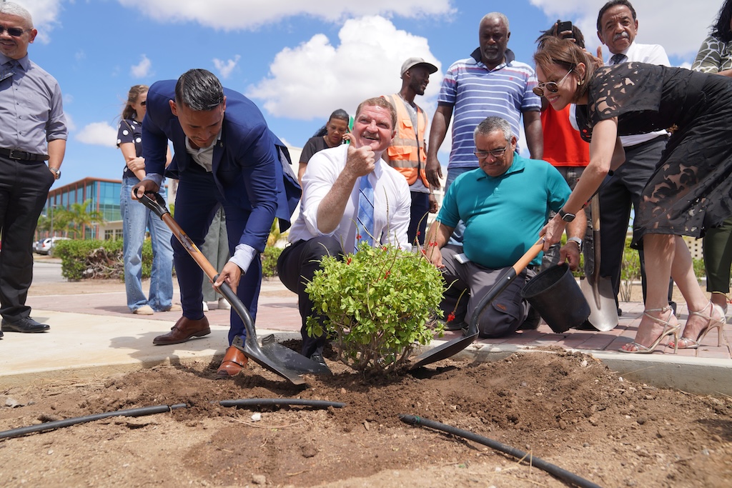Diahuebs merdia, Prome Minister mr. Mike Eman, hunto cu Minister di Infrastructura drs. Rene Herdé y Minister di Turismo mr. Wendrick Cicilia a asisti na un ceremonia riba Rotonde Las Americas dilanti di Cas di Cultura relaciona cu e proyecto di reforestacion y di renobacion di cuidad. Despues di algun tempo cu ta renobando e rotonde aki, a toca turno pa embeyece esaki cu un gran cantidad di mata.
