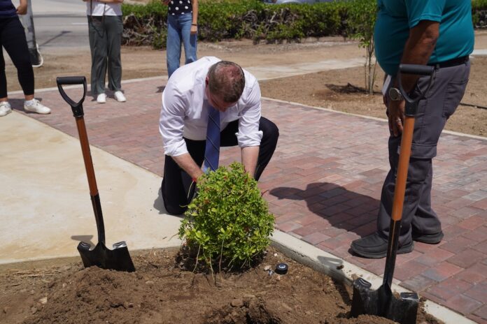 Diahuebs merdia, Prome Minister mr. Mike Eman, hunto cu Minister di Infrastructura drs. Rene Herdé y Minister di Turismo mr. Wendrick Cicilia a asisti na un ceremonia riba Rotonde Las Americas dilanti di Cas di Cultura relaciona cu e proyecto di reforestacion y di renobacion di cuidad. Despues di algun tempo cu ta renobando e rotonde aki, a toca turno pa embeyece esaki cu un gran cantidad di mata.