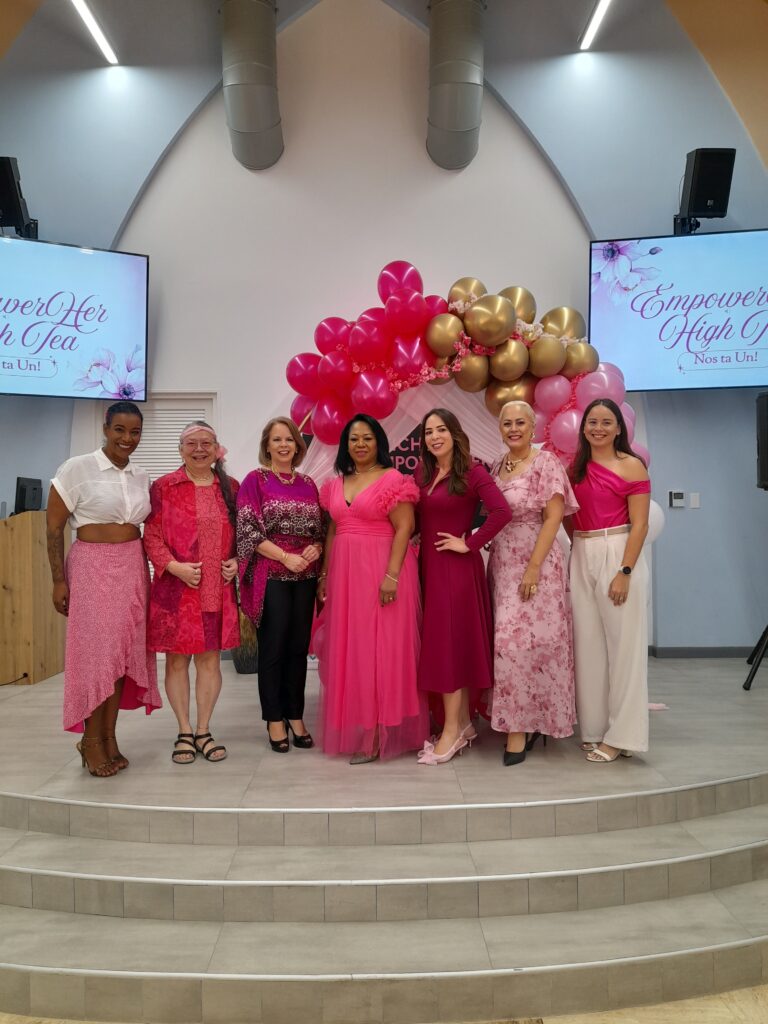 Un bon dia yen di alegria ! Nos ta bay bek den tempo un rato y ta para keto un rato Diadomingo dia 1 di Maart 2026 cu un bunita actividad di EmpowerHer Nos ta UN High Tea cu tur e damanan nechi bisti den e tokenan color ros cla of scur, den e auditorium di Universidad di Aruba cu participacion di varios  bunita y talentoso hende muhe di Aruba cu a comparti nan testimonio di nan yabi pa a logra exito den nan bida.  Lyzaira Polak, Evelyn Wever Croes, Allyson Ponson, Rose Anne Ruiz y Miraila Bernadina Theodora di e Fundacion cu ta hopi activo na Hulanda,  a comparti nan storia, y  Lady Ruth a recita un bunita poema na ingles titula Being the change y a invita tur presente canta cu ne un cantica di y pa hende muhe cu su letranan inspira riba un melodia dushi simpel y bon conosi. Un super dushi momento cu sintimento di hopi alegria ! Ki impactante tawata cada testimonio cu tur nan ups and downs, nan obstaculonan surpasa, nan trabaonan duro incansabel  y logra exito tras exito. Henter e publico hende muhe presente a biba y sinti cu cada un di nan, identifica nos mes cu nan como UN pasobra hende muhe ta sostene apoya y keda contento pa otro hende muhe. Hopi di nos tin nos grupo di sister friends.
