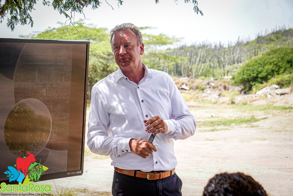 Departamento di Agricultura, Cria y Pesca Santa Rosa tabata tin e honor y placer di ricibi bishita di Staatssecretaris di Hulanda sr. Eddie van Marum hunto cu su delegacion. Riba e mainta aki nan a wordo ricibi pa director di Santa Rosa sra. Nathalie Maduro y tambe presente minister di Sector Primario sr. Geoffrey Wever. Despues di un introduccion chikito caminda henter e delegacion a ricibi un bunita pechi di Santa Rosa como regalo y asina duna inicio na e recorido den Santa Rosa pa admira seccion y cultivonan cu e departamento mes ta produci. E recorido tabata canando y asina haya un splicación corto di kico ta tareanan responsabilidad, proyecto y manehonan di Santa Rosa riba e tereno di Sector Primario.