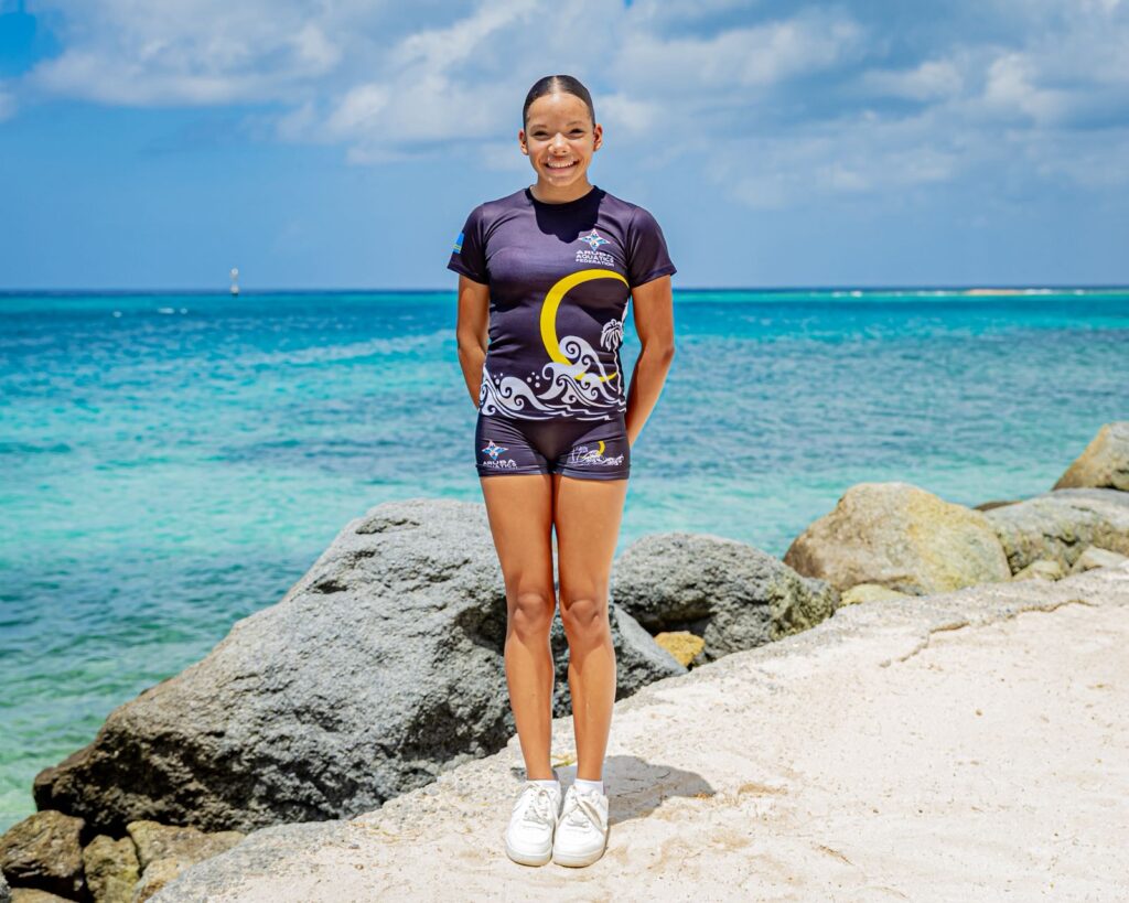D-Leylah Gerrel (14): D-Leylah a mustra consistencia y forza competitivo den su 9 eventonan, logrando 2 final den Top 8 den 200m free y 200m back y 4 PB’s. Den relay 400m Free a logra medaya di plata y PB y den 200m Free, nan a keda net na di 4 lugar. D-Leylah a contribui na un resultado fuerte pa Team Aruba.