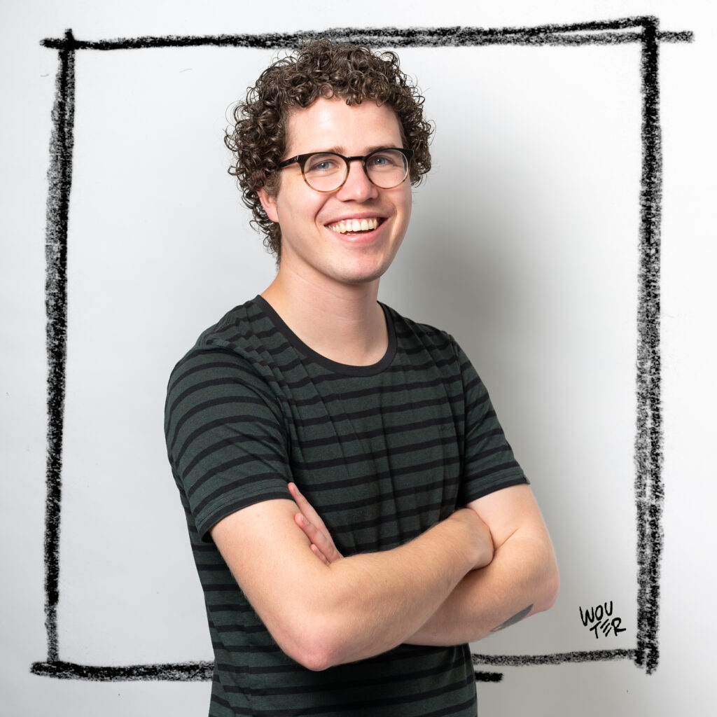 Artista visual Wouter Goudswaard a pasa Prinses Amalia Basisschool ayera pa duna un presentacion y conta storia. Wouter ta crea storia pa medio di strips/cartoons hopi colorido.