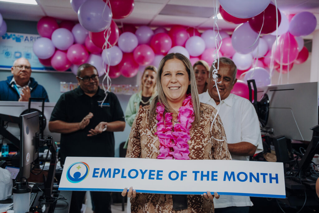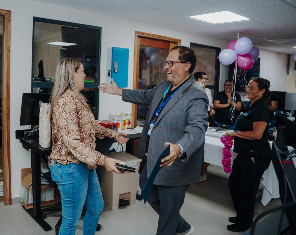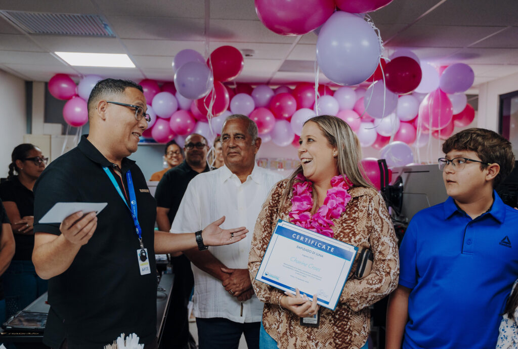 Colega Charine Solognier-Croes, jr. system-/netwerkbeheerder na departamento di IT, no a sospecha net nada ora ela drenta bek su oficina despues di lunch. Un sorpresa grandi ela topa cune na momento cu su famia, coleganan y miembro di Hunta di Directiva Gregory Croeze a dal e grito di ‘surprise’. Un rato ela keda den shock prome cu a realisa cu nan tur t’ey pa celebra su bunita nominacion di empleado na Hospital pa luna di augustus 2025. Un momento super special cu sigur nunca elo lubida. Charine su motivacion y dedicacion ta un ehempel pa tur. E ta wordo mira como e ‘boss lady’ di su departamento: cariñoso, atento y semper cla pa yuda.