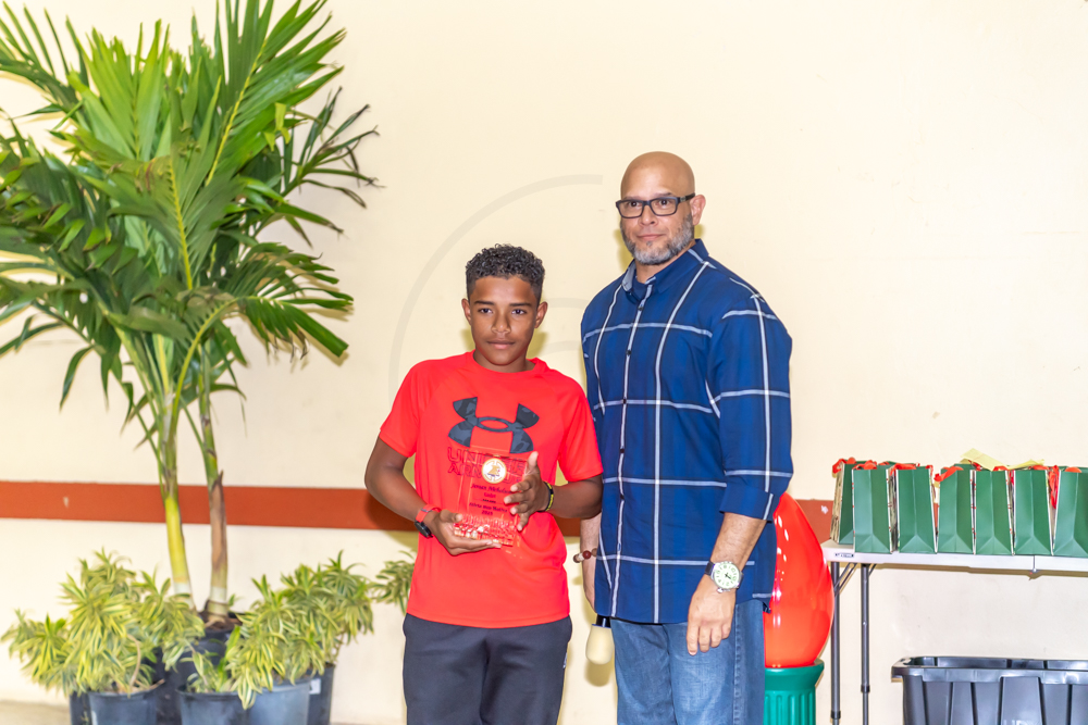 Grand Master Melvin Rasmijn a entrega premio na Jeroan Nicholson cu a sali atleta mas motiva 2025 den e categoria di Cadet.Master Jourde Klaber a entrega premio na Wei Jet cu a sali Rookie di Aña 2025.