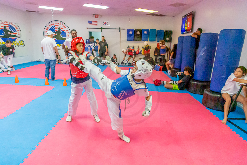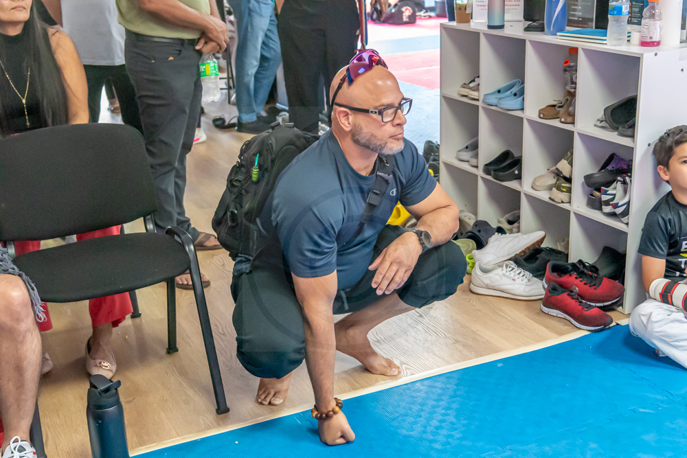 Grand Master Melvin Rasmijn y Master Yoshmar Wever a coach e team di Aruba durante e scrimmage. E atletanan di Taekwondo Team Aruba a bringa for di mainta 10’or te cu 3’or di atardi cu un pauze di 30 min.