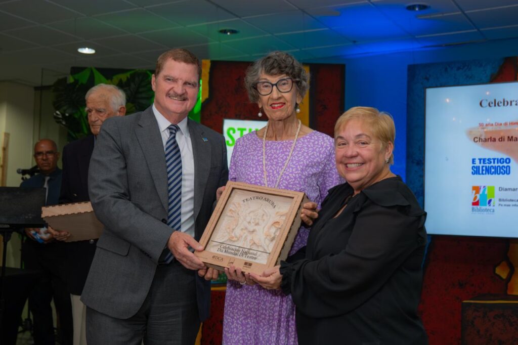 Durante e ceremonia, a honra dos figura importante den ambito cultural. Premio Nacional di Literatura (Teatro) 2026 Ernesto Rosenstand, otorga na dr. Wim Rutgers, mientras cu Premio Nacional di Teatro 2026, entrega na Sra. Maybelline Aura Arends-Croes.