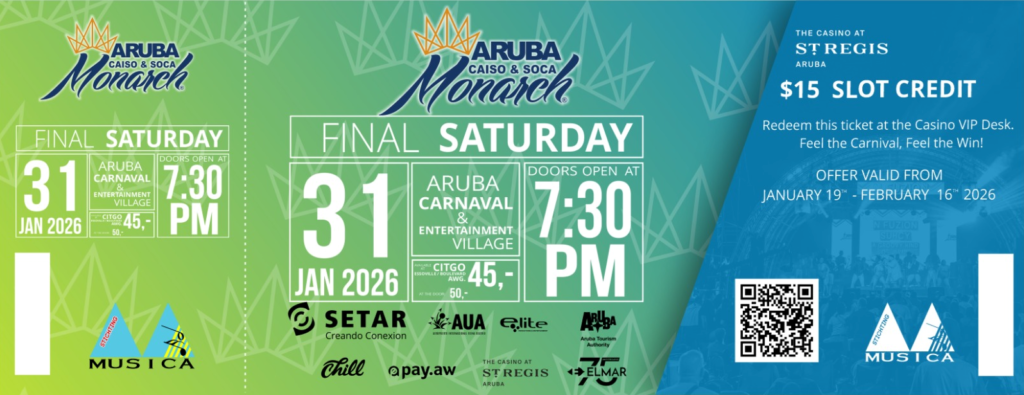 Despues di un “Meet The Press” exitoso unda e cas di celebracion tawata amfitrion di tur prensa hunto cu tur lider di banda, The Casino at St. Regis hunto cu Caiso & Soca Monarch, ta ofrece tur persona cu cumpra un ticket di entrada pa e anochi final 31 di Januar1 2026 $15 slot credit.