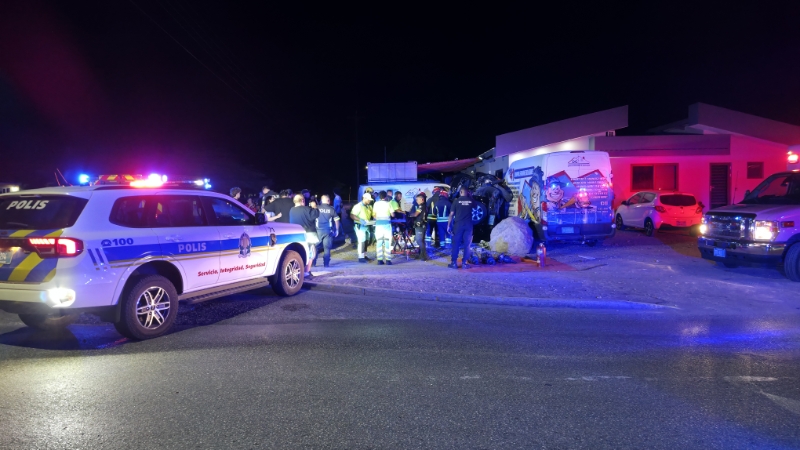 Mesora a pidi pa Brandweer y tambe pa varios ambulance. Debi cu den e auto tawata tin 4 hoben.