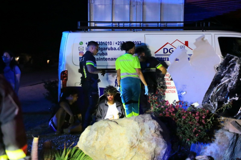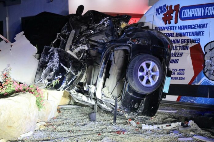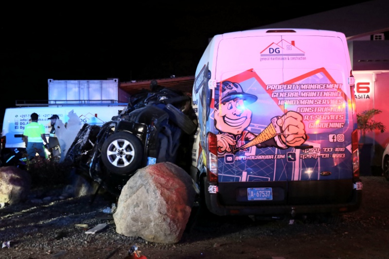 Ta asina cu e auto aki tawata bayendo zuid cu un velocidad super halto. Poco mas pazuid di Wacamaya Appartements e ta perde control y ta bay na su man robes.