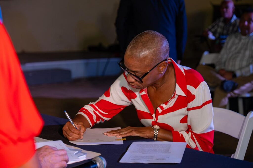 Prome Minister mr. Mike Eman a subraya e compromiso cu tin cu pueblo, den bishita di Accion di Bario a mira e necesidad aki. Palabra di elogio a bay pa e diferente personanan cu a haci traspaso posibel den corto tempo e.o. Haime Vingal di Ministerio di Asunto General, Luis Boekhoudt di DLV, Robert Maduro y Laurence Quant, Isabel Dammers di DIP, Davy Apuro, Mildred Britten, Julie Wever di FCCA. Jose Marie y Notario Yarzagaray.