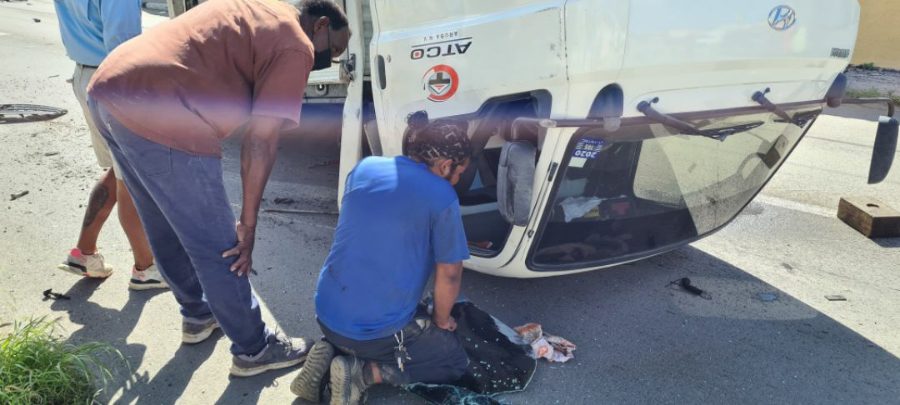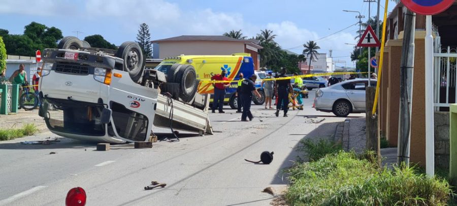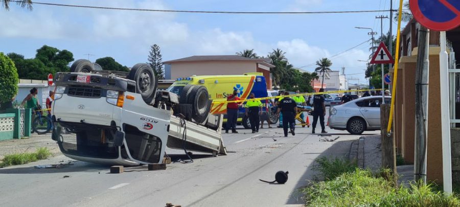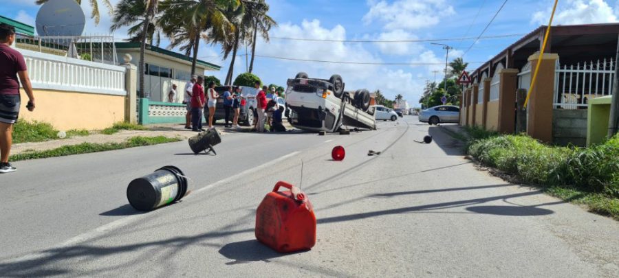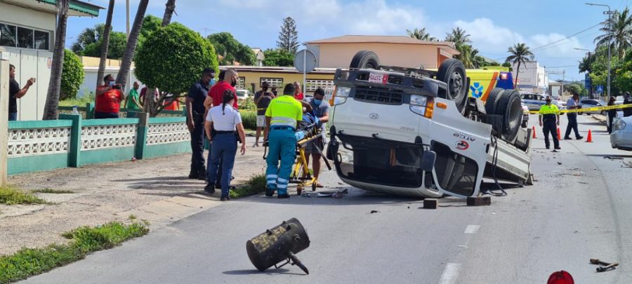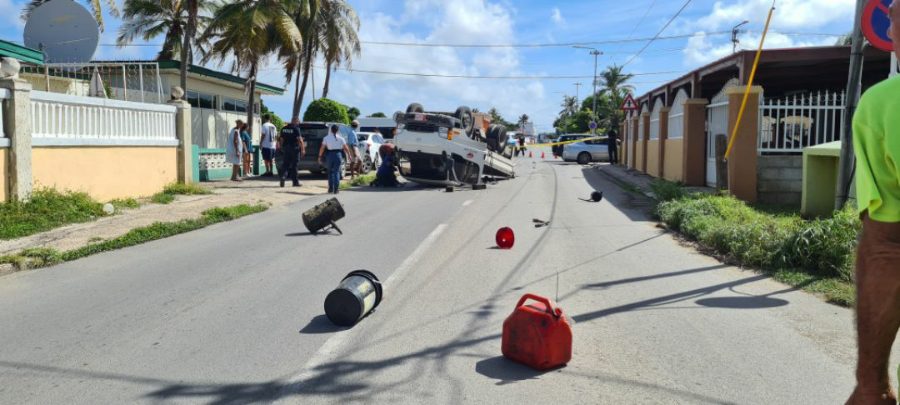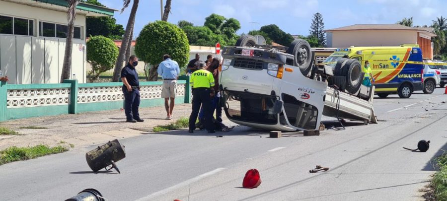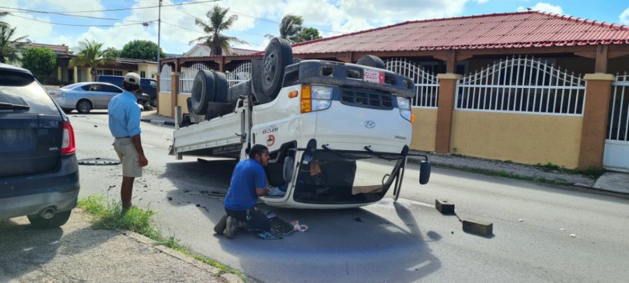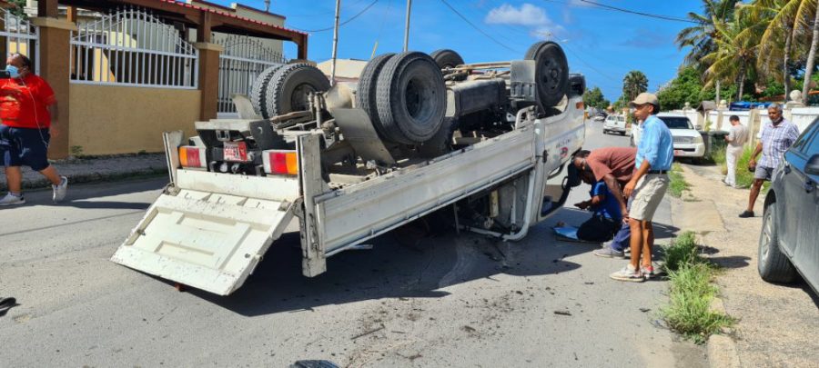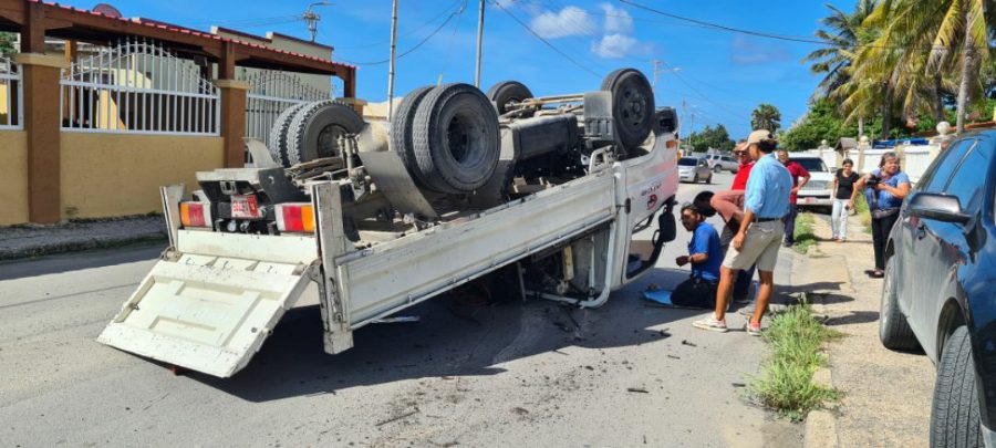 Mesora despues di e impacto chauffeur di e Nissan a baha y core bay cerca chauffeur di e truck pa chek si e ta ok.