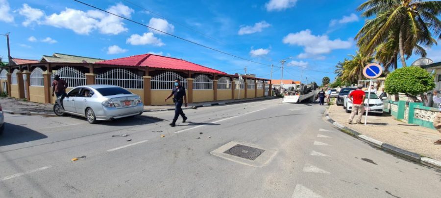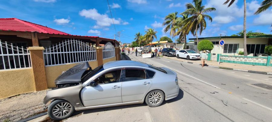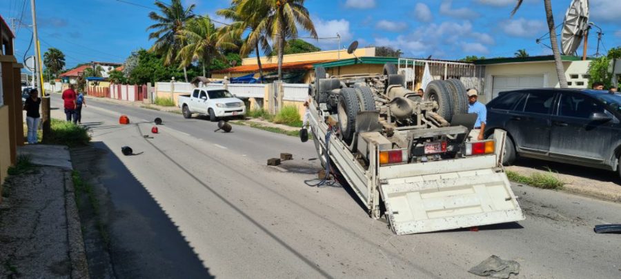 Chauffeur di e Nissan Fuga tawata ariba e caminda di Emmastraat y yegando e crusada di Prof. Lorentzstraat e lo no a calcula kiko e ta bay haci y ta dal e parti patras di e truck di ATCO poniendo e bolter.