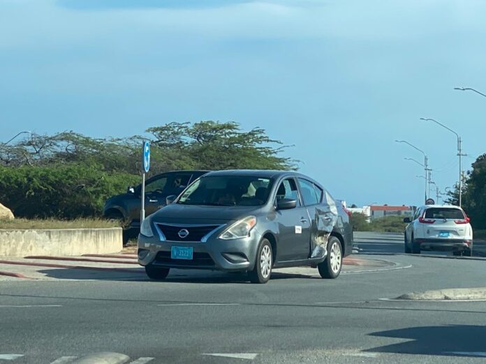 Diaranson atardi a drenta informe di un accidente na e rotonde pa bay hospital, mesora a dirigi un patruya na e sitio. Na yegada di e patruya a bin compronde cu aki ta trata di un accidente unda un chauffeur turista den un Nissan Versa biniendo for di rotonde Sasaki no a duna preferencia na e Ford Edge cu tabata riba e rotonde y e Edge a dal e Versa bir’e 90 grado. E impacto tabata na banda di e porta patras di e Versa. Afortunadamente ningun hende a resulta herida pero e accidente aki a obstaculisa e fluho di trafico.