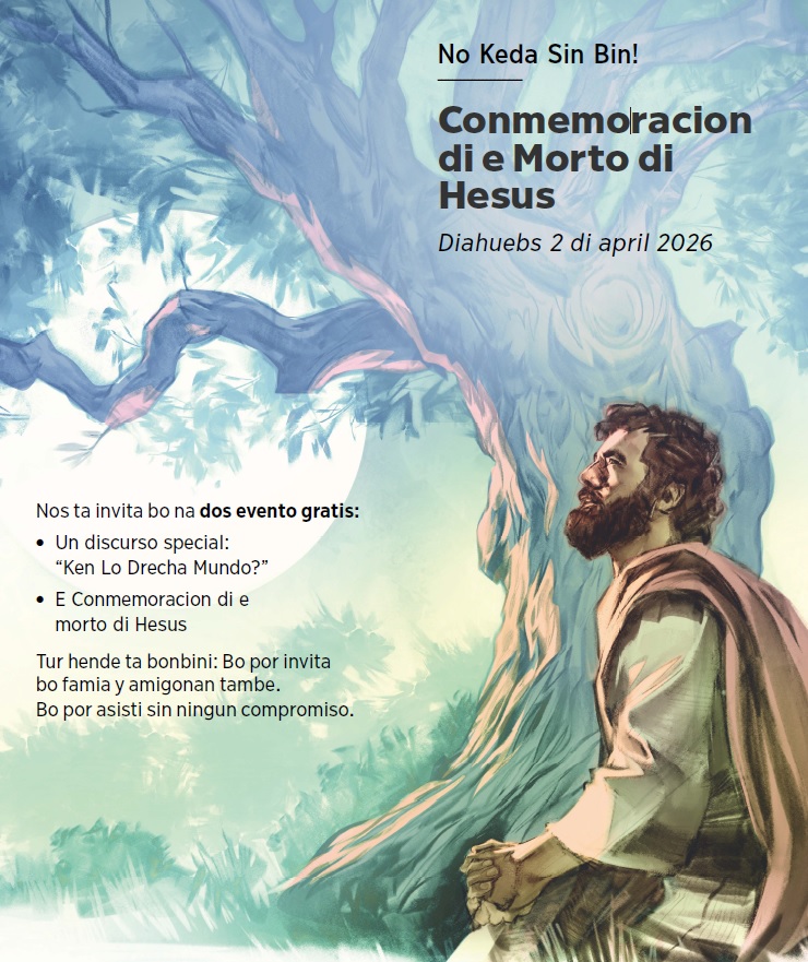 Pa haya sa mas tocante Cena di Señor, e discurso special y pa asisti na un luga mas cerca di bo, por fabor bishita jw.org > tocante nos > conmemoracion. Ambos evento ta gratis y habri pa publico, manera ta e caso cu tur otro evento cu e Testigonan ta tene.
