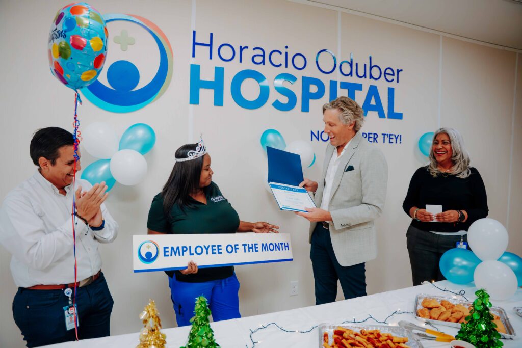 Horacio Oduber Hospital (HOH) durante henter aña ta saca tur luna un empleado cu a resalta y e biaha aki e ultimo empleado di luna pa aña 2025 ta Erwina Sophia di departamento di voeding. Den un sala di reunion coleganan a bini hunto p’asina sorprende Erwina cu e bunita reconocimento aki. Un dia cu sigur nunca e lo lubida ora di a mira su mama para eynan hunto cu su coleganan ta grita ‘surprise’ y unda cu palabranan di elogio pa su trabou no falta di parti di Hunta di Directiva y management.