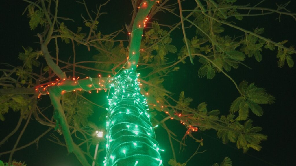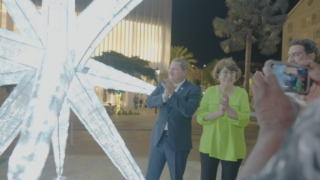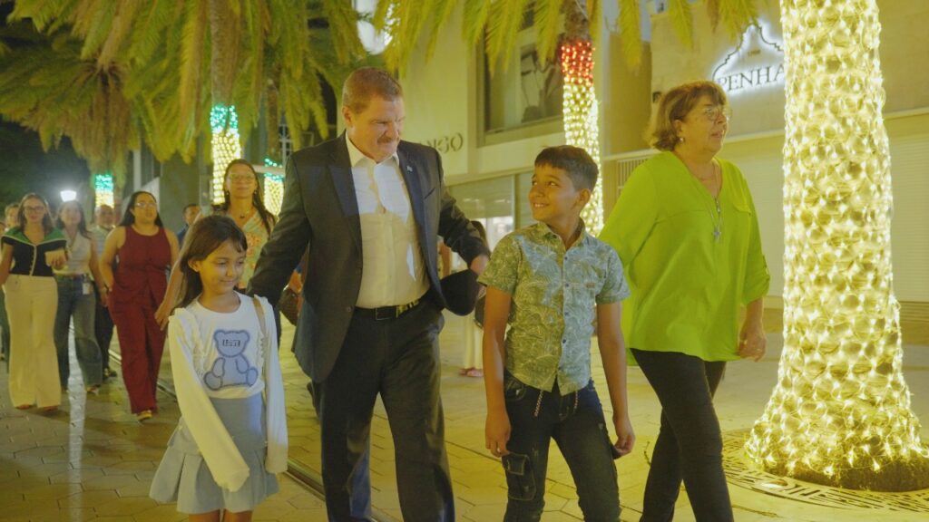 “Den e prome paseo den Caya Grandi, yena di iluminacion festivo, ta refleha e caminda cu pais Aruba ta riba dje, un caminda di yena speransa atrobe”, ta locual Premier Eman a expresa.
