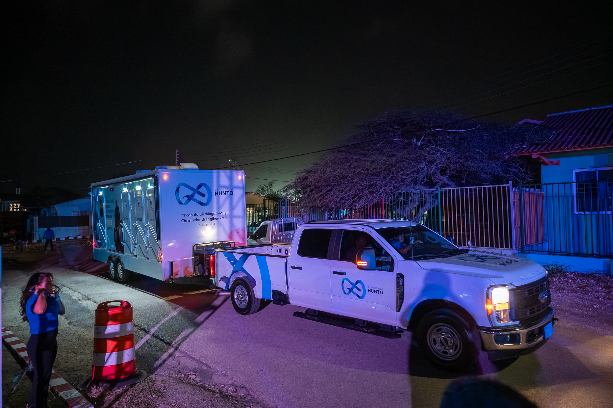 Diaranson anochi, den presencia di Minister di Husticia mr. drs. Arthur Dowers, Minister di Salud Publico drs. Mervin Wyatt-Ras y Minister di Relacion di Reino mr. Gerlien Croes, y un grupo grandi di invitado di sector priva y stakeholders, Stichting Hunto a presenta su unidad mobil nobo, un instrumento mas cu lo permiti profesionalnan yega directamente na personanan cu ta biba riba caya of cu ta enfrenta problema di adiccion y salud mental.