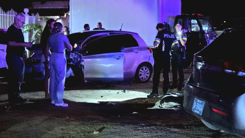 Na yegada di polis nan ta topa cu e autonan benta panort di caminda. Tawata trata di Toyota Vitz y Kia.