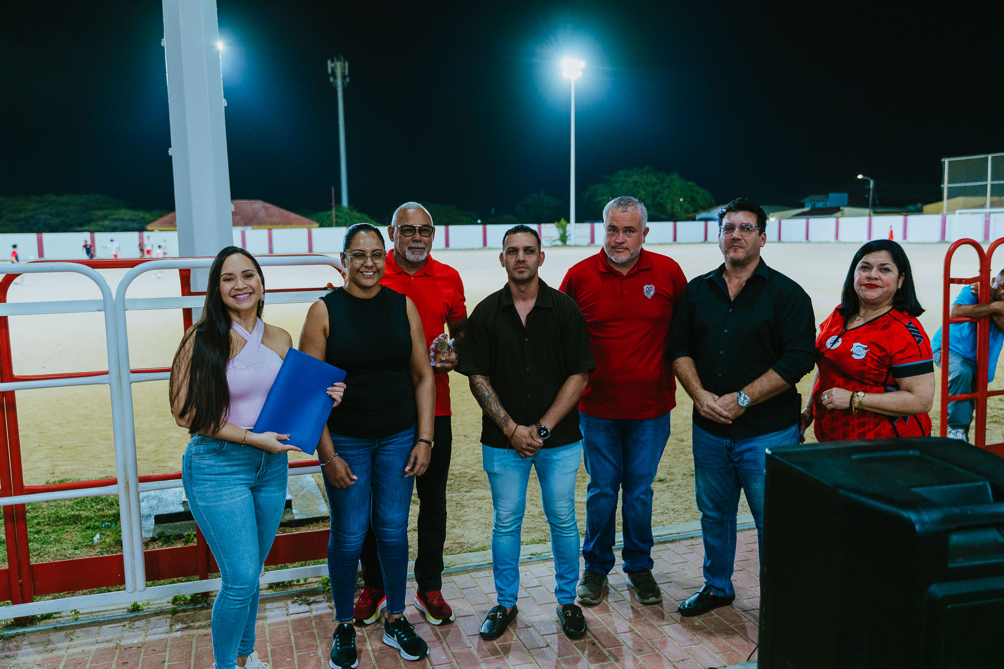 Minister di Deporte, mr. Gerlien Croes, ta anuncia cu e instalacion di luznan LED na veld di River Plate a keda oficialisa y culmina exitosamente y cu e veld awe ta completamente ilumina cu luznan LED. E entrega di e proyecto aki ta marca un otro logro den e plan structural pa mehora infrastructura deportivo na Aruba.