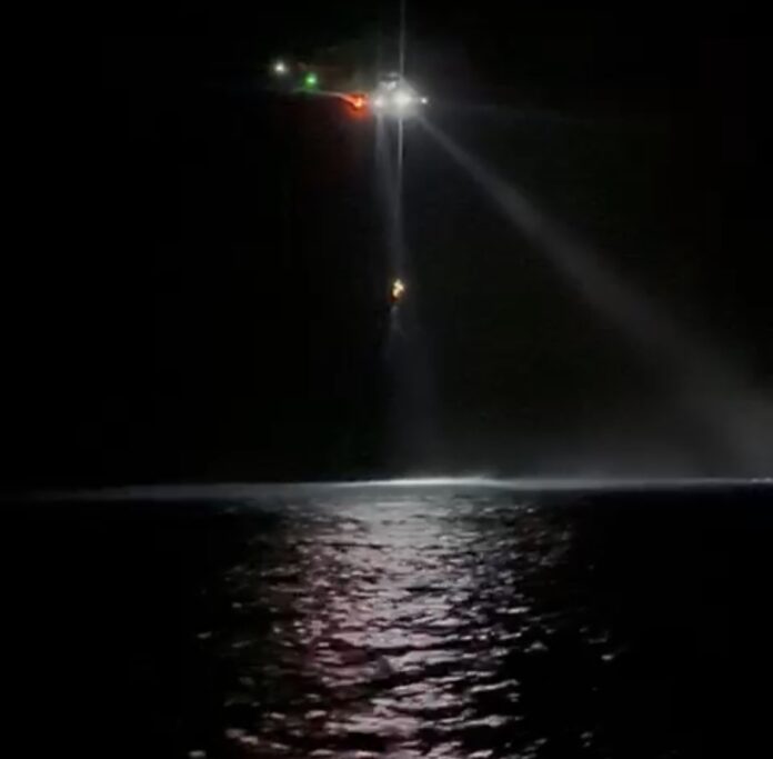 Diahuebs, alrededor di 6’or di atardi Wardacosta a ricibi un melding di Cuerpo Policial di Aruba (KPA) cu un homber cu ta adicto sin cas a perde riba lama. Mesora KPA a kuminsa busca e homber perdi den e area di e costa di Bushiri, Manchebo y Eagle Beach. Wardacosta tambe a desplega un boto chikito y un Metal Shark pa e area di rif di Barcadera. Durante e busceda, tantu e helicopter komo e avion Dash di Wardacosta a wordu desplega pa yuda cu busceda entre e boortoren (caminda e homber probablemente a landa bai) y e costa. Inicialmente, e busceda conhunto no a duna resultado, pero alrededor di 10 or di anochi e avion Dash a mira e persona perdi serka di e plataforma. E tripulacion di e avion a notifica tantu e helicopter como e Metal Shark despues di a mira e homber. Mesora e helicopter a cuminsa hisa e homber for di awa. Despues di a his’e, a hiba e homber pa Aeropuerto Reina Beatrix, unda Cuerpo Policial di Aruba y ambulance tabata presente pa asisti’e. E homber lo sigui risibi asistensia di outoridadnan lokal.