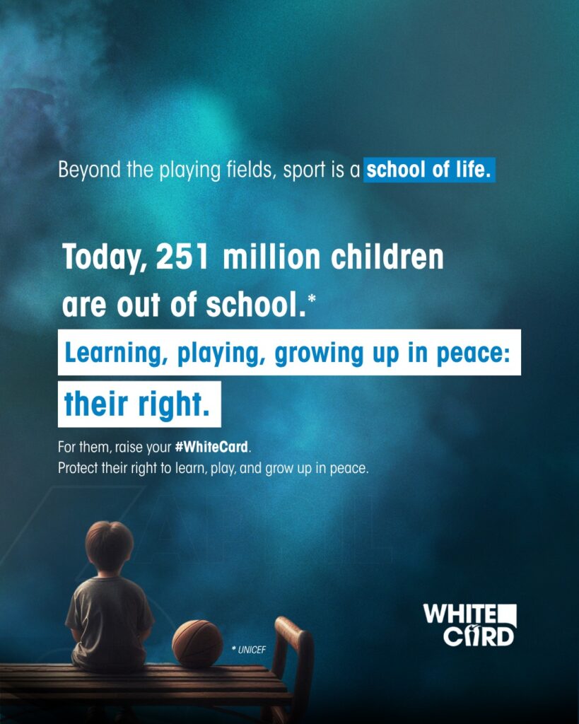 Pa e motibo aki, nos ta haci un yamada pa lanta bo #WhiteCard. Esaki ta un simbolo di bo compromiso pa proteha e derecho di tur mucha pa siña, hunga y crece den un ambiente di paz. Door di uni nos forsa, nos por garantisa cu deporte ta keda un herment poderoso pa transforma bida y pa duna cada mucha e oportunidad cu e merece pa briya.