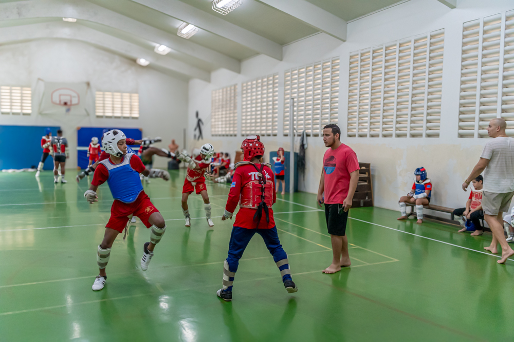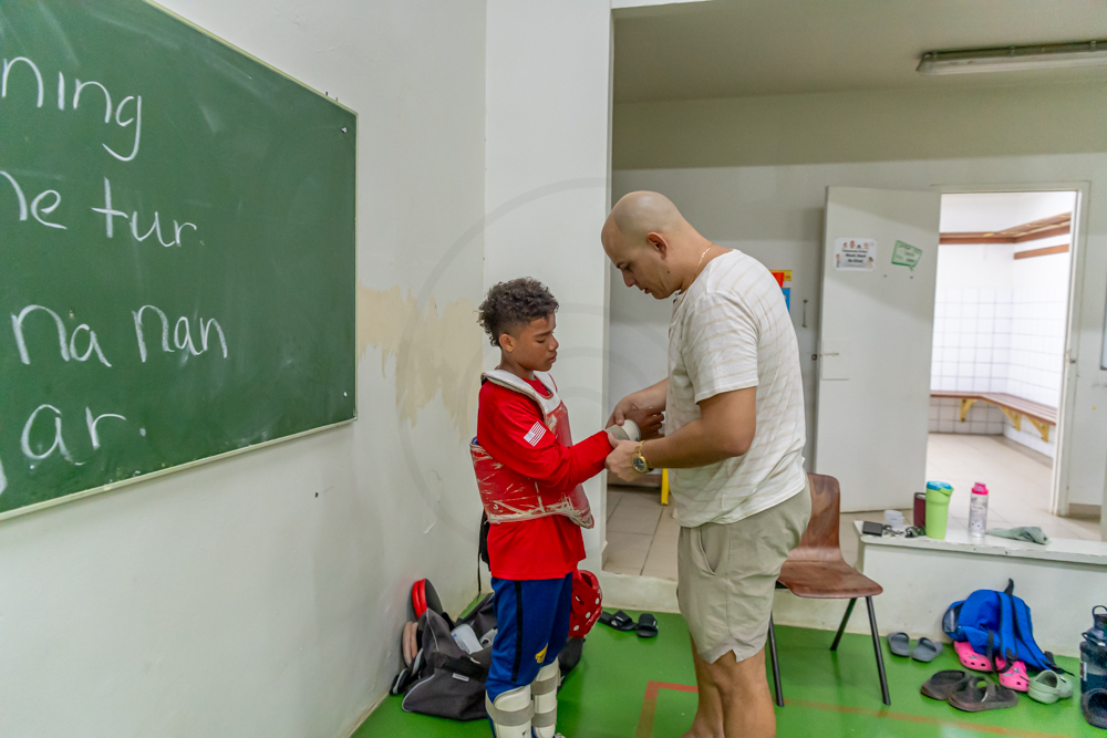 Master Yoshmar Wever lo coach e atletanan di Taekwondo Team Aruba.